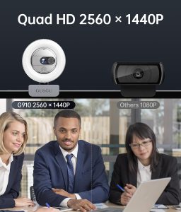 GUSGU G910 2K Quad HD Webcam for PC, with Microphone & Light & Privacy Cover, Web Camera for Desktop Computer/Laptop/MacBook, USB Streaming Camera