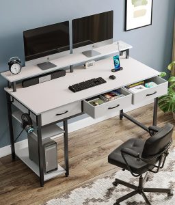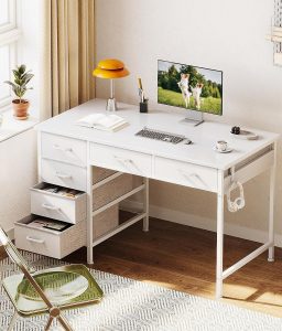 ODK Computer Desk with 6 Drawers, 40 Inch Small Desk with Storage, Reversible Desk with Headphone Hook for Home Office, Work Study Table for Bedroom, White